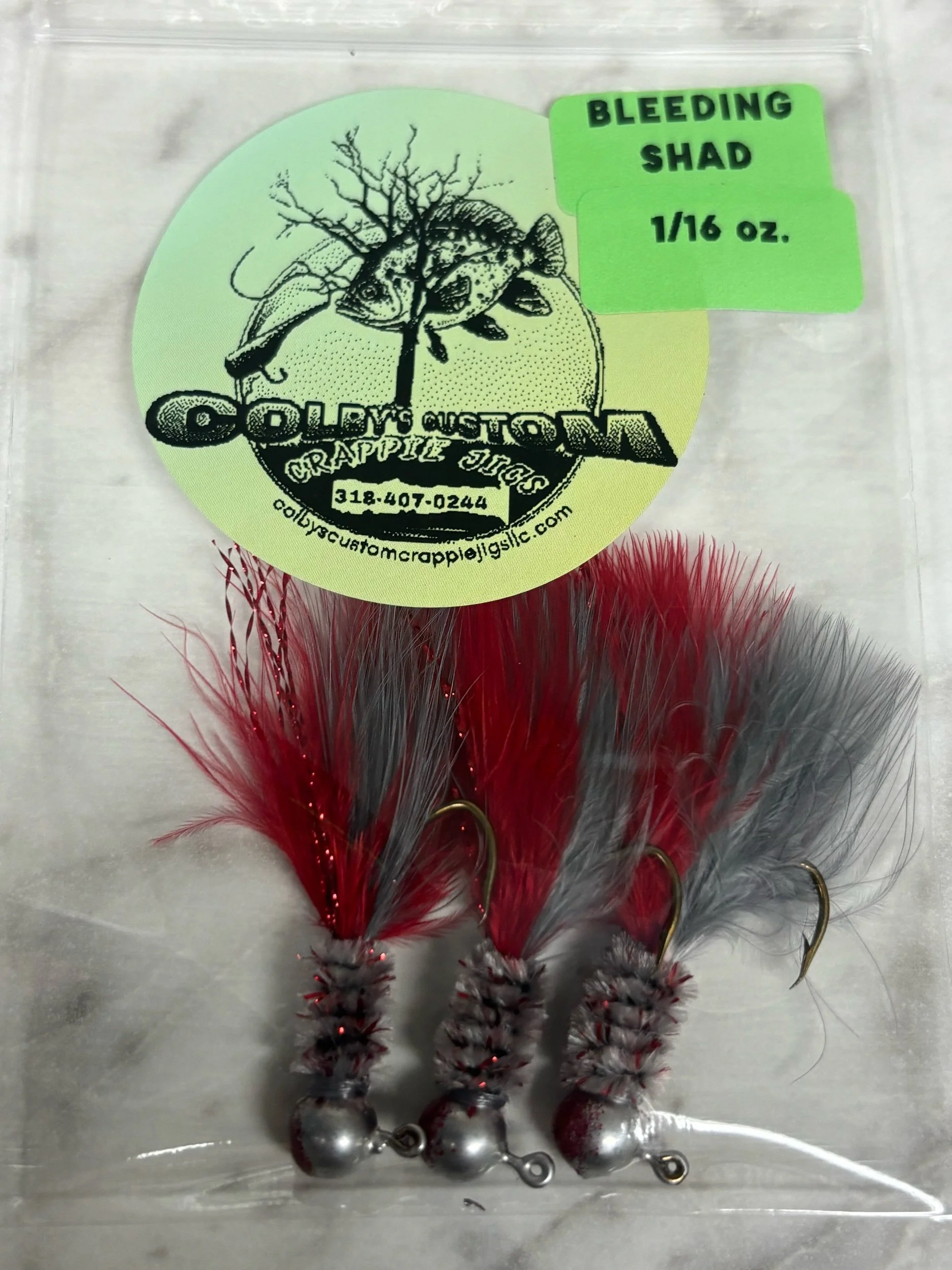 Shop › BLEEDING SHAD 3 Pack Image 1 of 2 Image 2 of 2 BLEEDING SHAD 3 Pack $7.50 1/16 ounce tied with Marabou Purchase Added! 1/16 ounce tied with Marabou